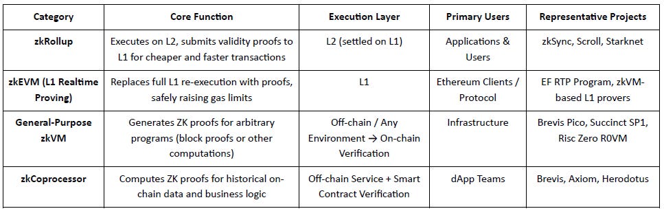 Overall, zkVMs are the foundational engines of verifiable computation, while zkCoprocessors are the application-layer verification modules. The former builds the technical moat, and the latter drives commercial adoption—together forming a universal trustless computing network.