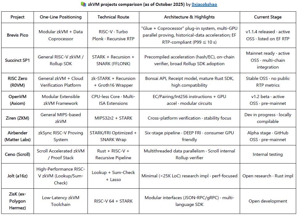 Representative projects include Risc Zero, Succinct SP1, and Brevis Pico / Prism.