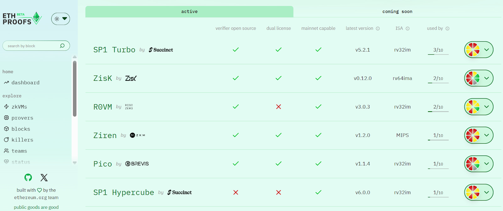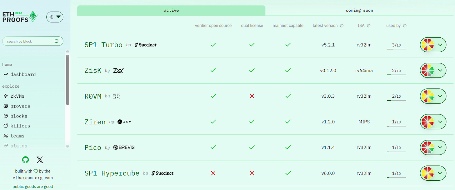 According to the Ethereum Foundation’s zkEVM Tracker, the main teams participating in the L1 zkEVM RTP roadmap include: SP1 Turbo (Succinct Labs), Pico (Brevis), Risc Zero, ZisK, Airbender (zkSync), OpenVM (Axiom), and Jolt (a16z).