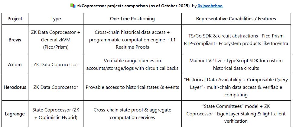 The zk-Coprocessor market is now led by Brevis, Axiom, Herodotus, and Lagrange.