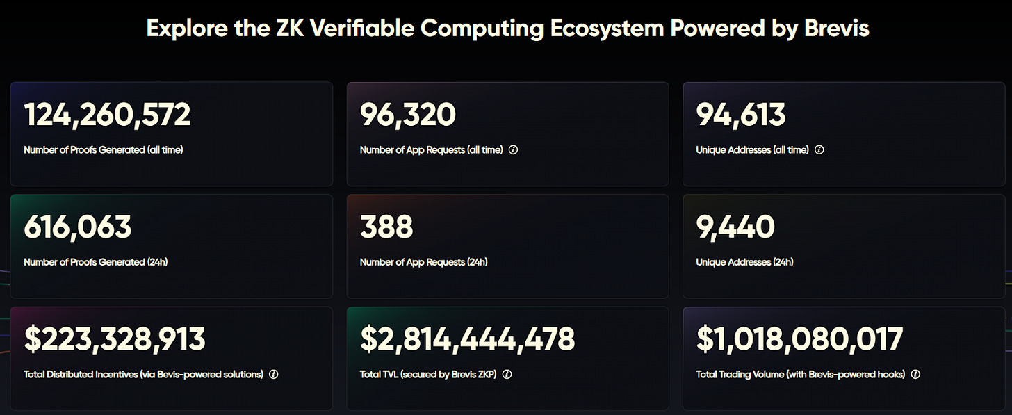 Network Scale and Metrics, According to Brevis Explorer (as of October 2025):