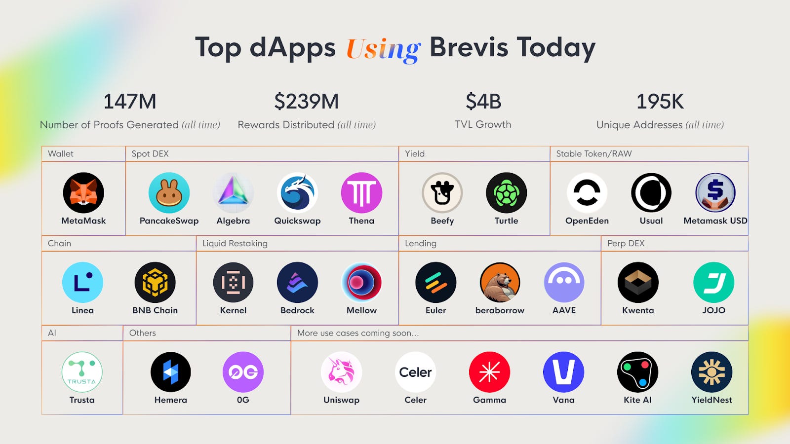 PancakeSwap (20.6M): Highlights Brevis’s performance in real-time fee and discount computation.