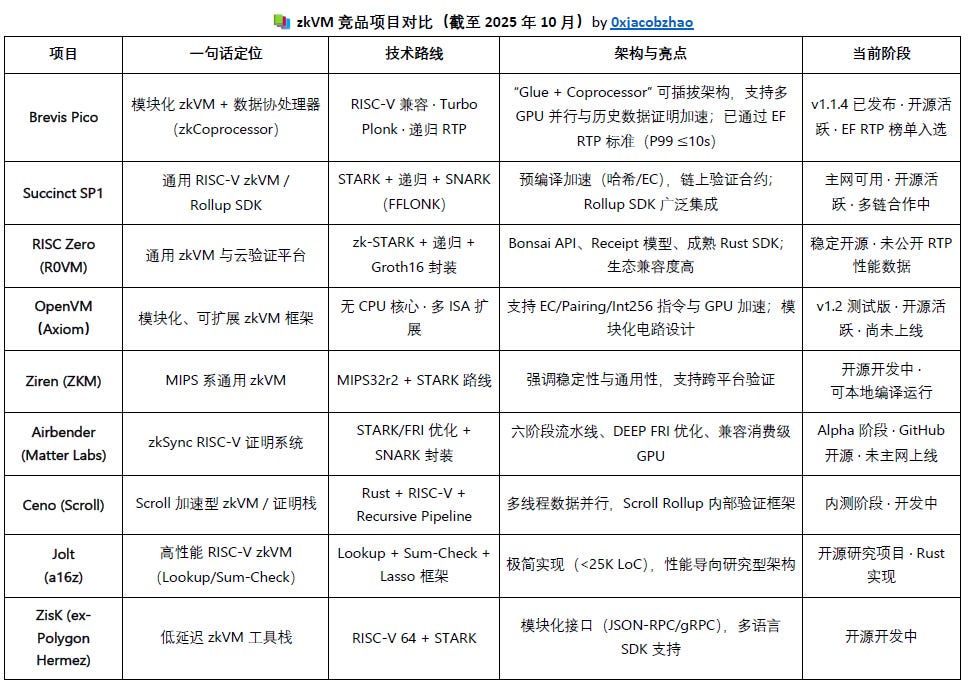安全与审计:RISC Zero 与 SP1 均已通过独立安全审计;Pico 正在审计流程中;