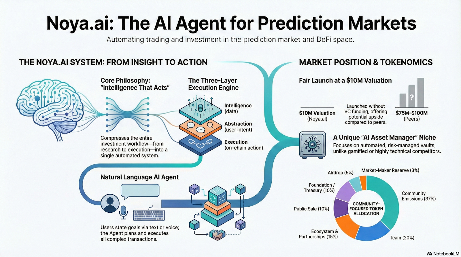 NOYA is a rare target in the current market that superimposes multiple narratives of AI Agent × Prediction Market × ZKML, and further combines the product direction of Intent-Driven Execution. At the asset pricing level, it launches with an FDV of approximately $10M, significantly lower than the common $75M–$100M valuation range of similar AI / DeFAI / Prediction related projects, forming a certain structural price difference.