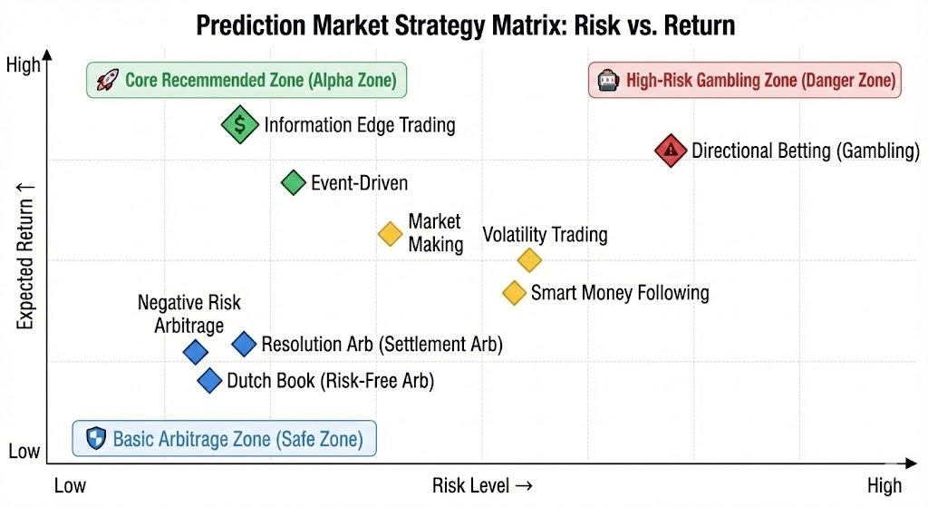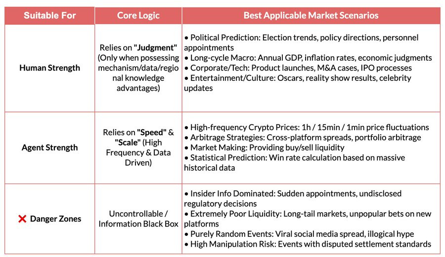 Summary: Strategies suitable for Agent execution in prediction markets are concentrated in scenarios with clear rules, codifiability, and weak subjective judgment. Deterministic arbitrage should be the core revenue source, with structured information and signal following strategies as supplements. High-noise and emotional trading should be systematically excluded. An Agent’s long-term advantage lies in disciplined, high-speed execution and risk control capabilities.